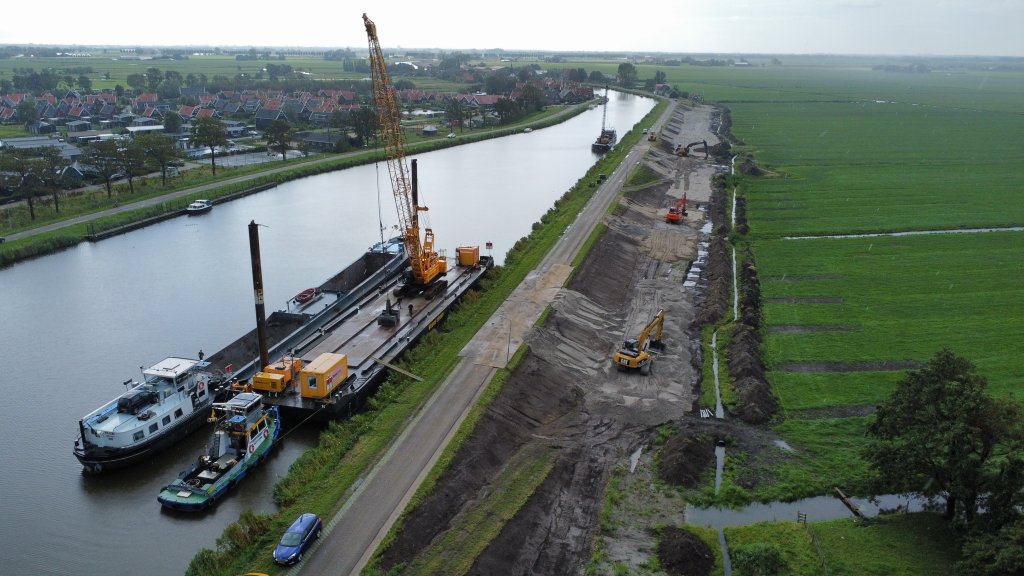 The inner side of the dike has been made less steep and the supporting berm has been widened by adding soil. A new toe ditch has been dug along a large part of the route and cables and pipes have been relocated.